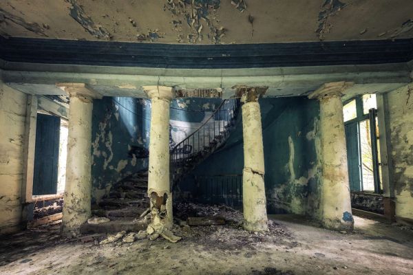 Un peu plus longtemps et le hall d'entrée de ce château, autrefois magnifique, s'effondrera. Les couleurs et l'atmosphère qui s'en dégagent sont toutefois tout à fait particulières.