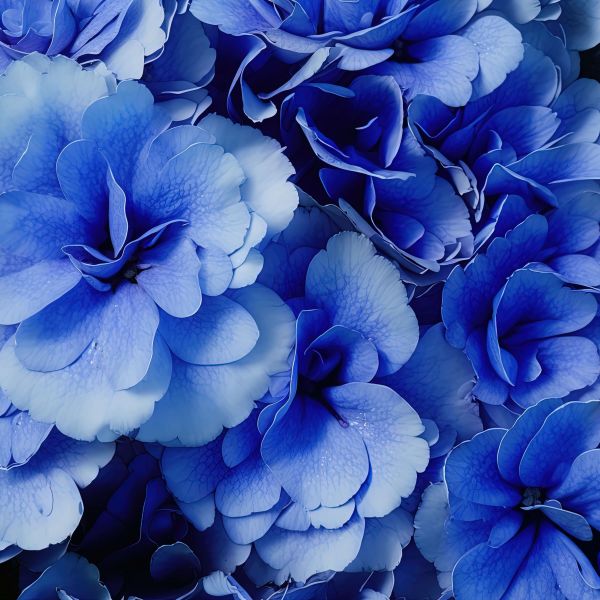 Gros plan sur des hortensias bleus en différents matériaux