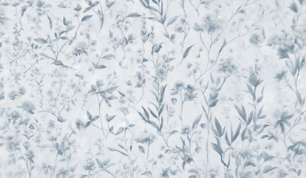 La base bleue claire confère à chaque espace un charme intemporel et revigorant. Les délicates fleurs et feuilles animent le mur de manière subtile, sans dominer.