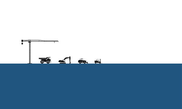 Plat bleu foncé qui va à mi-chemin de l'impression avec les silhouettes de différents véhicules de construction.