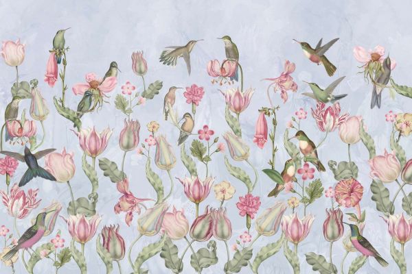 Papier Peint - Symphonie des Colibris de Printemps - Sérénade Bleu Pastel