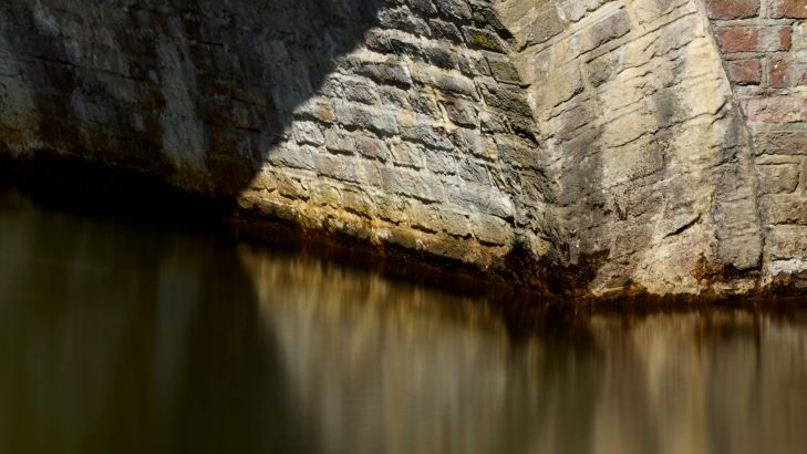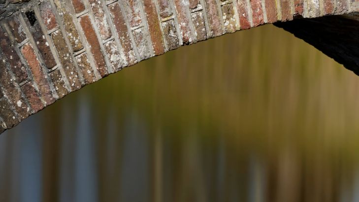 Vieux pont en arc vers le château au bord du canal. Combinez ce papier peint photo dans votre salon ou votre chambre à coucher.