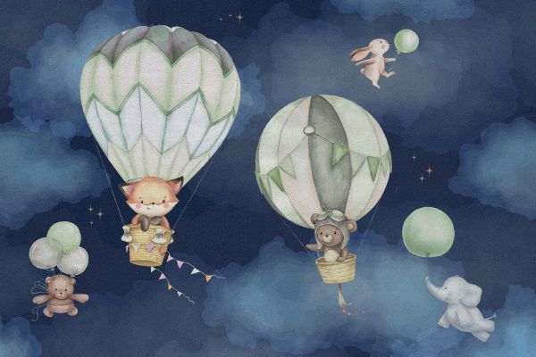 Papier Peint - Voyage en mongolfière vert